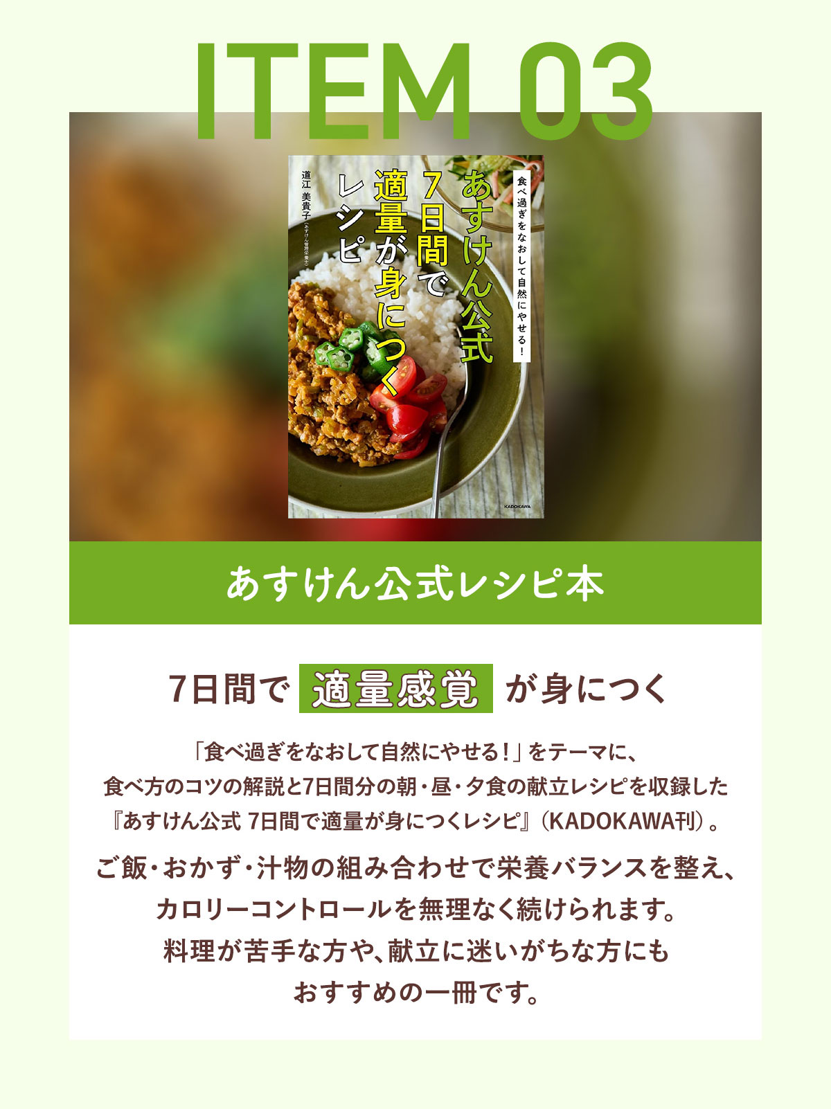【「食べ過ぎをなおして自然にやせる! あすけん公式 7日間で適量が身につくレシピ」の詳細」
